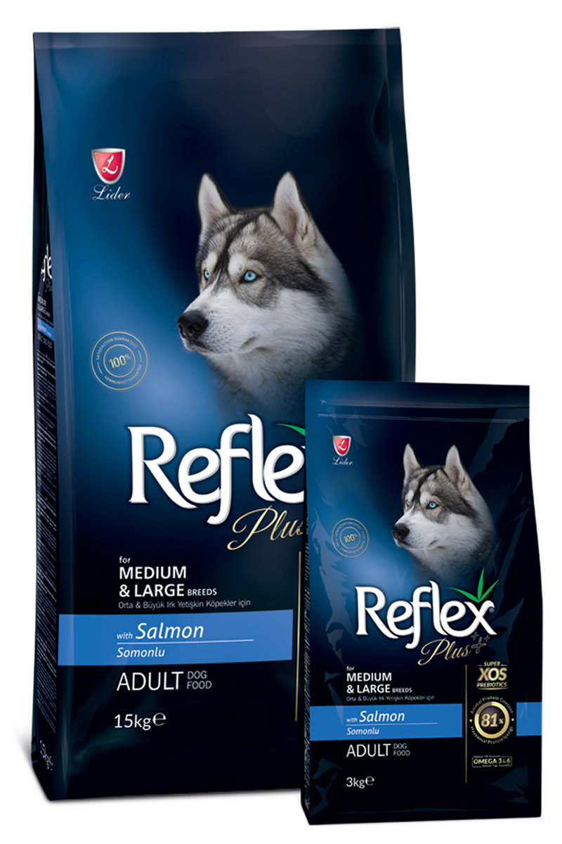 غذای سگ رفلکس پلاس، با طعم ماهی سالمون غنس از اسیدهای چرب امگا 3 و امگا 6 است و توسط بذر کتان متعادل شده است. گیاه یوکا در کاهش بوی مدفوع موثر است و به جذب مواد غذایی کمک می کند.