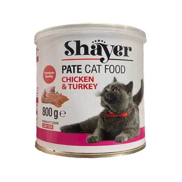غذای کنسرو گربه شایر shayer طعم مرغ و بوقلمون CHICKEN & TURKEY وزن 800 گرم