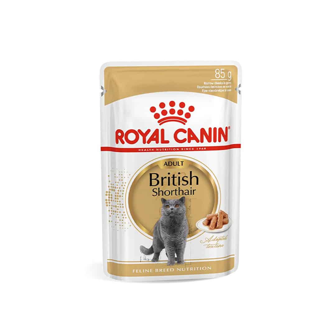 پوچ گربه بریتیش یا بریتیش وت رویال کنین غذایی کامل است و برای گربه های نژاد بریتیش با سن بیش از 12 ماه تولید شده است.