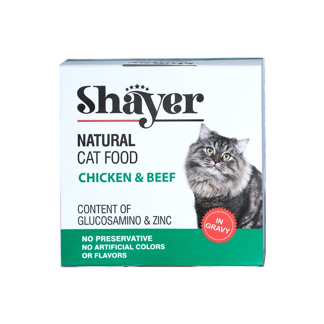 کنسرو گربه شایر shayer مدل نچرال با طعم مرغ و گوشت CHICKEN & BEEF وزن 110 گرم